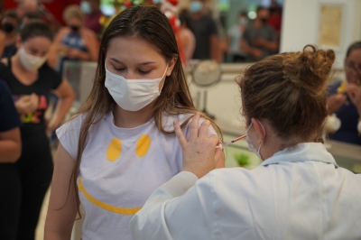 Durante a ação, menores de 18 anos precisaram estar acompanhados por um responsável. Para se imunizar, foi preciso apresentar documento oficial com foto e carteira vacinal.