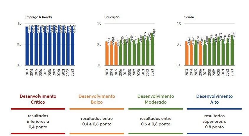 O salto no indicador representa uma evolução expressiva nos últimos dez anos. Em 2013, o índice de Lucas era de 0,6937. Desde então, o município cresceu de forma consistente, com o maior avanço registrado entre 2022 e 2023, quando o índice saltou de 0,7633 para 0,8160.