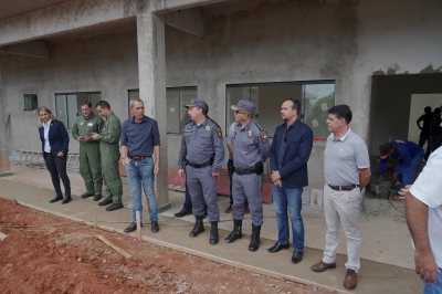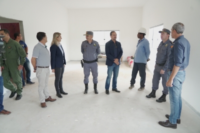 No fim da tarde, a comitiva visitou a obra do novo batalhão para a Polícia Militar. A estrutura está na fase de acabamento da cobertura, implantação do revestimento cerâmico e pintura.