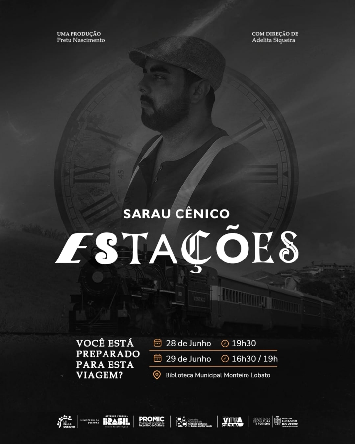 A Secretaria de Cultura e Turismo de Lucas do Rio Verde convida a comunidade para prestigiar mais um espetáculo teatral gratuito no município. O Sarau Cênico “Estações: A Vida em Poesia e Música Popular Brasileira”, está sendo promovido pelo ator e produtor cultural luverdense, Pretu Nascimento, que teve o seu projeto selecionado pelo Edital Paulo Gustavo.
