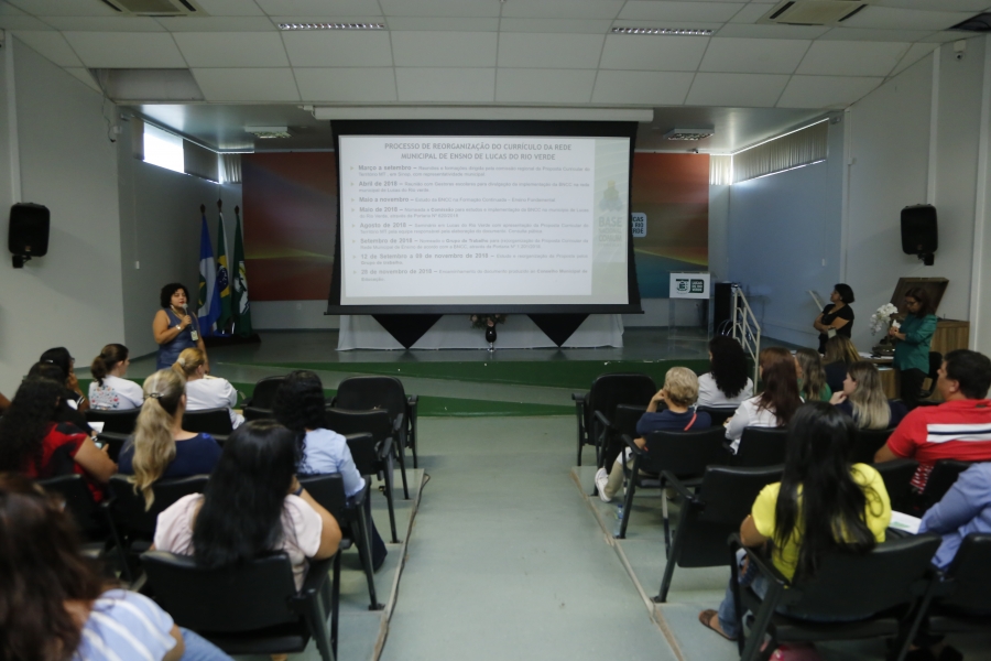 Profissionais da rede municipal de ensino participaram nesta segunda-feira (17) do seminário “Reorganização da Proposta Curricular da Rede Municipal de Ensino de Acordo com a BNCC”, organizado pela Secretaria Municipal de Educação e Conselho Municipal de Educação de Lucas do Rio Verde.