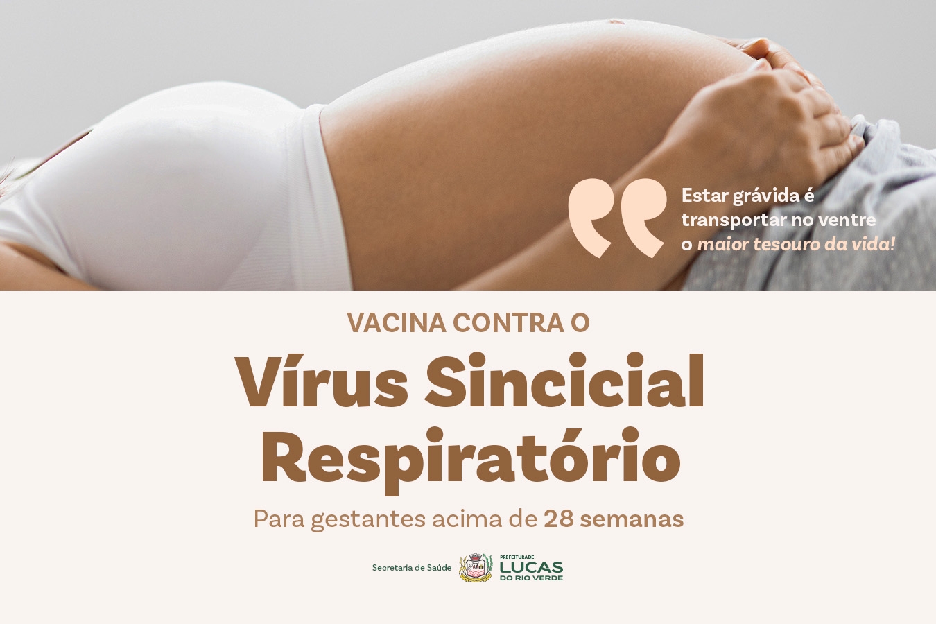 A Secretaria Municipal de Saúde de Lucas do Rio Verde inicia nesta quarta-feira (17), em todas as unidades básicas de saúde (UBSs), a vacinação contra o Vírus Sincicial Respiratório (VSR).