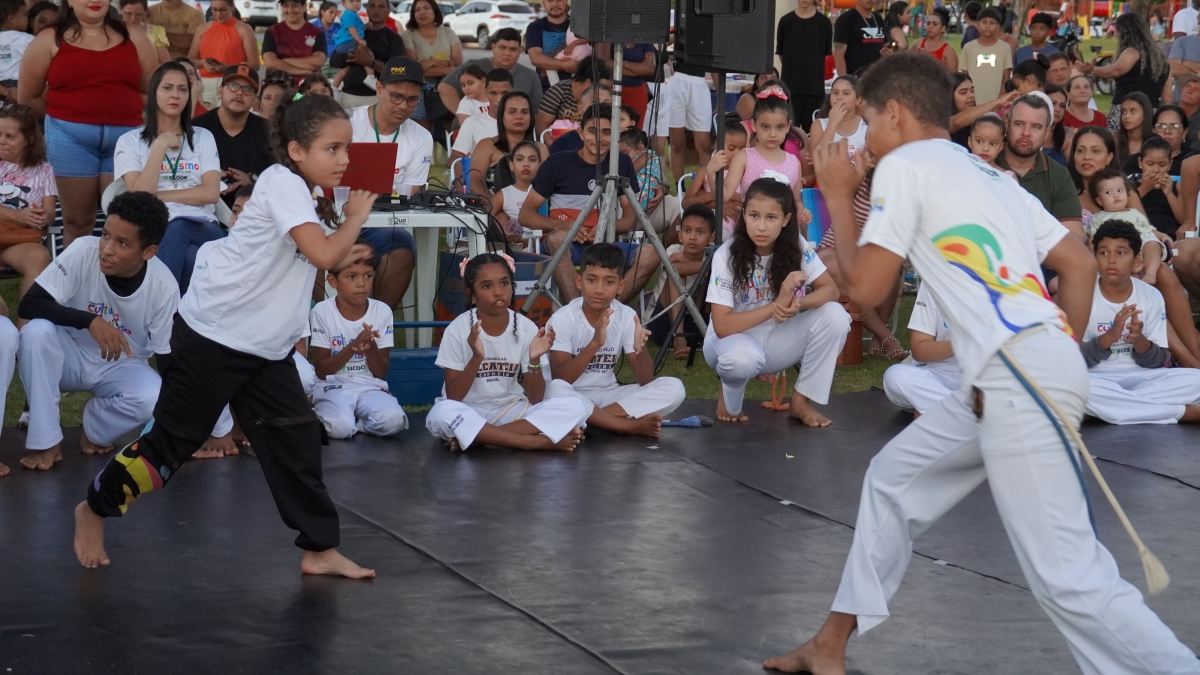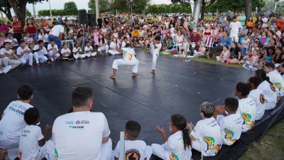 Apresentação das oficinas de Dança e capoeira na rotatória do Paço Municipal
