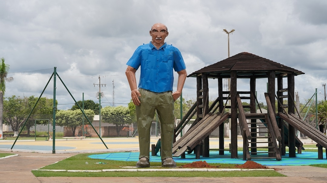 A estátua de Francisco Lucas foi construída em 2020 e está afixada na praça que leva o mesmo nome, no bairro Cidade Nova. O monumento possui 4,5 metros de altura e foi construído com materiais reciclados, valorizando a conscientização ambiental e a proposta de que tudo se renova. A ideia teve como objetivo homenagear o seringalista Francisco Lucas de Barros, que emprestou seu nome ao município. Francisco Lucas de Barros nasceu no dia 18 de outubro de 1874, na antiga São José dos Cocais, atual Nossa Senhora do Livramento, em Mato Grosso. Ele faleceu em sua casa, na rua Tenente Joaquim de Albuquerque nº 1, bairro do Porto, em Cuiabá, no dia 11 de abril de 1945, vítima de septicemia (sepse ou sépsis: infecção no sangue). Filho de José de Barros Maciel e Mariana Marques de Barros, Francisco Lucas se casou às 16h de um sábado, dia 31 de março de 1894, com sua sobrinha Mariana Leite de Barros, uma ilustre dama cuiabana, filha do tenente Manoel Wenceslau de Barros. Para se ter uma ideia, os paraninfos dos atos civil e religioso foram o coronel Antônio Leite de Figueiredo, capitão Fernando Leite de Figueiredo, tenente Benedicto Ezequiel de Barros e Raimundo Augusto de Figueiredo todos membros da alta sociedade cuiabana. Por volta de 1905, Francisco Lucas iniciou a exploração da borracha em Mato Grosso. Iniciou sua vida como comerciante com um dos maiores armazéns no bairro do Porto em Cuiabá e, em seguida, se associou com Arthur de Campos Borges, a Sociedade Mercantil Lucas Borges & CIA, com sede em Cuiabá e filial na Vila do Rosário, atual Rosário Oeste para atuar na extração de borracha, nas terras do Rio Verde. Mais que um seringalista, ele era uma das figuras mais proeminentes e importantes de Mato Grosso. Francisco Lucas recebeu várias patentes do Governo Federal: de tenente, capitão, major, tenente-coronel e, finalmente, coronel, em 1912. Ao mesmo instante em que explorava a extração de látex, convivia no meio político e social de Cuiabá de forma intensa. Devido ao seu prestígio junto ao Governo Federal, Francisco Lucas adquiriu muitas terras no Médio-Norte mato-grossense. Tanto as terras onde hoje é parte do município de Nova Mutum, quanto as terras de Lucas do Rio Verde, pertenciam ao coronel Francisco Lucas de Barros. Um resumo rápido de sua trajetória na vida pública aponta para o ano de 1895 e 1896, quando foi patenteado tenente. Francisco Lucas foi nomeado também como delegado do segundo distrito da capital Cuiabá. Em outubro de 1898, ele já era capitão. Seguiu subindo de patente até que em 1912 se tornou coronel. Os negócios cresceram de forma estrondosa e, em 1913, estava como o número 1 da lista dos 15 maiores contribuintes de impostos sobre indústrias e profissões do Mato Grosso. Além do escritório na então Vila do Rosário, o coronel Francisco Lucas tinha um barracão no Piavoré, atual cidade de Lucas do Rio Verde, onde eram gerenciados os negócios da exploração da borracha. No barracão se encontrava todo o aviamento para os seringueiros e lá se recolhia toda a borracha produzida. O coronel Francisco Lucas contava com cerca de 350 homens envolvidos na extração do látex nas terras do Rio Verde.
