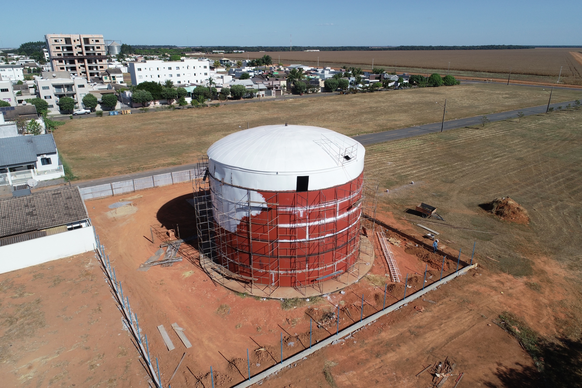 A atual fase consiste na parte de solda, pintura e instalação do alambrado. Nos próximos dias serão implantados o transformador e gerador, que já foram adquiridos pela construtora.