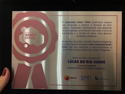 Lucas do Rio Verde ocupa a 8ª posição na lista das cidades mais inteligentes e conectadas do Brasil, recebendo o Selo Bronze no Ranking Connect Smart Cities para cidades com até 100 mil habitantes.