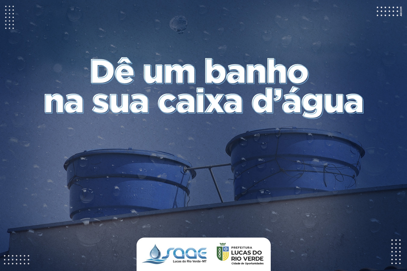 O Serviço Autônomo de Água e Esgoto (Saae) orienta toda a população a realizar limpezas em suas caixas d‘água, com mais atenção depois do período de chuvas. As desinfecções da caixa d’água devem ser realizadas a cada seis meses.