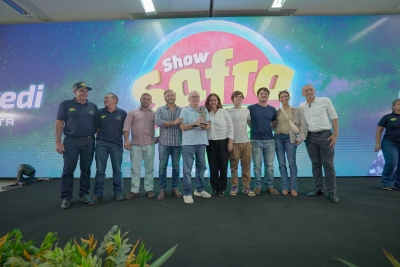 A programação do Show Safra, nesta quarta-feira (20), contou com a entrega do mérito ‘O Semeador’. O homenageado este ano foi o ex-senador por Mato Grosso, empresário e engenheiro agrônomo formado pela Universidade Federal do Rio Grande do Sul (UFRGS), Gilberto Flávio Goellner, de 77 anos.