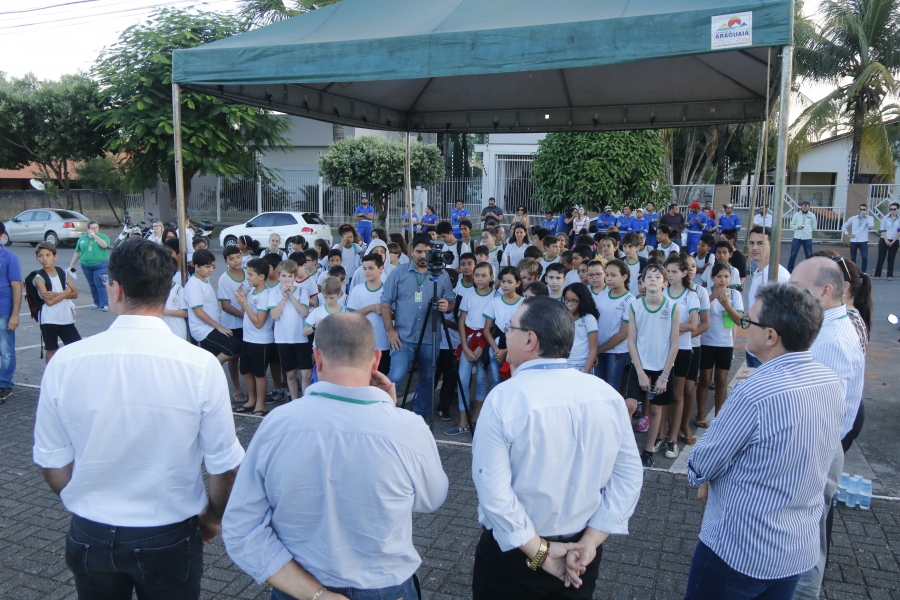 Com a presença de alunos, servidores e autoridades, a Prefeitura de Lucas do Rio Verde realizou no final da tarde desta quinta-feira (10) a entrega da revitalização da praça do Bairro Menino Deus e lançou a obra do sistema de esgotamento sanitário.