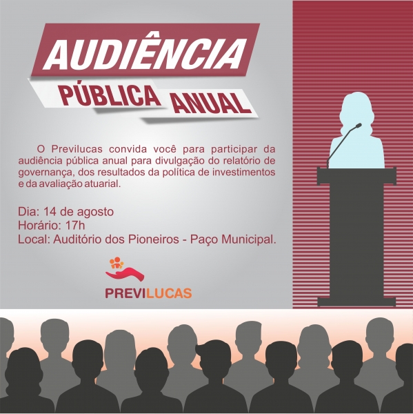 O Instituto Municipal de Previdência Social dos Servidores de Lucas do Rio Verde (Previlucas) realiza na próxima terça-feira (14) a audiência pública anual.