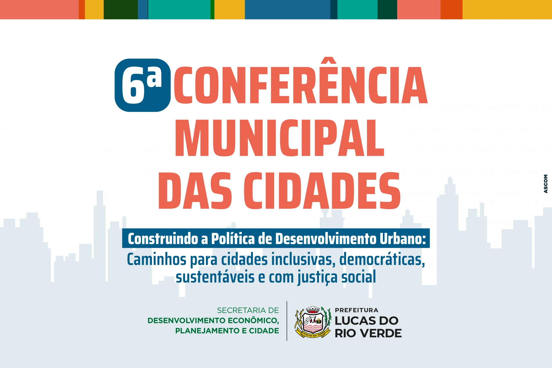 A Prefeitura de Lucas do Rio Verde, por meio da Secretaria Municipal de Desenvolvimento Econômico, Planejamento e Cidade, em conjunto com o Conselho Municipal da Cidade, realizará a 6ª Conferência Municipal das Cidades no dia 26 de junho. O evento acontecerá no Auditório dos Pioneiros, localizado no Paço Municipal, a partir das 7h30, com credenciamento e café da manhã de boas-vindas.