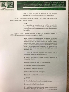 Para avaliar a situação das atividades escolares, o decreto apresenta a criação de uma comissão especial formada por gestores das redes públicas municipal e estadual e da rede privada de ensino, secretarias municipais de Educação e de Saúde, Procuradoria Municipal, Conselho Municipal de Educação, Sindicato dos Servidores do Ensino Público (Sintep), Conselho Deliberativo da Comunidade Escolar e Assessoria Pedagógica do Estado de Mato Grosso.