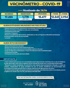 - Em “Transparência”, você pode acompanhar todo o processo de recebimento e destinação de doses do município pelos documentos oficiais do Ministério da Saúde e Governo do Estado de Mato Grosso. No “Vacinômetro”, todas as doses já aplicadas e à quais públicos foram destinados. Demais informações sobre o panorama atual da vacinação contra a Covid-19 em Lucas do Rio Verde, clique em https://www.lucasdorioverde.mt.gov.br/site/coronavirus