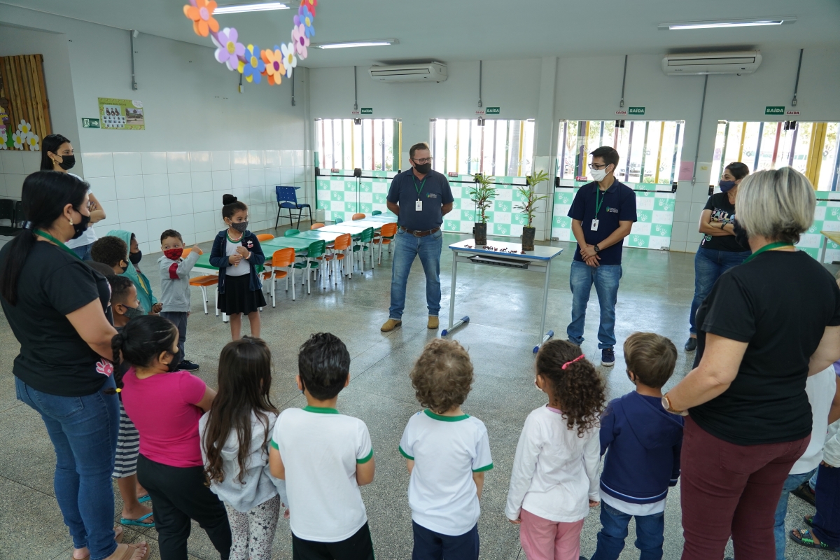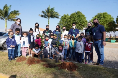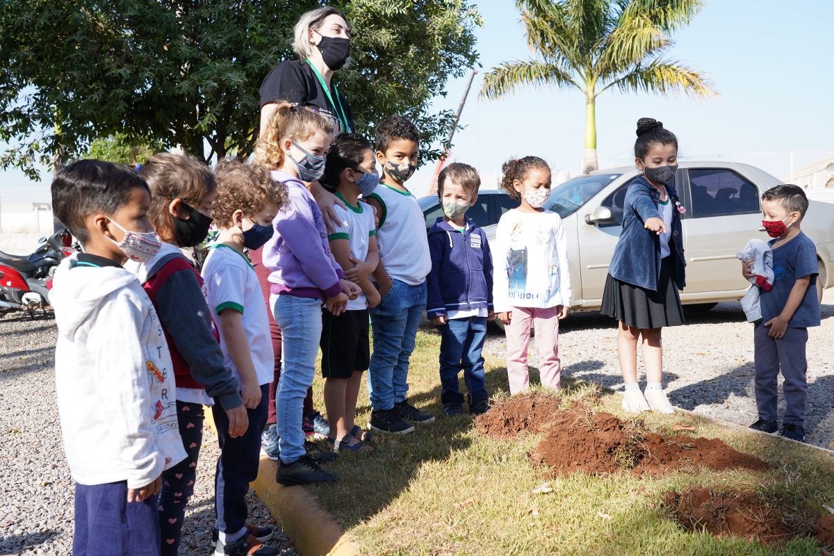 Duas turmas do Centro de Educação Infantil Paulo Freire conferiram de perto como plantar uma árvore, na manhã desta quinta-feira (12). Os servidores da pasta primeiro apresentaram as mudas aos alunos, explicando que a pequena plantinha pode se tornar uma grande árvore.