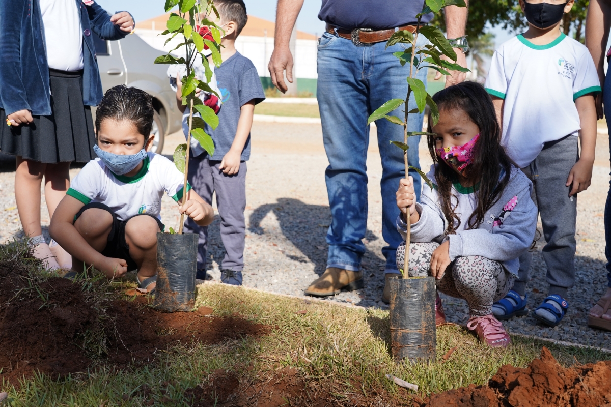 Plantar o futuro hoje para colher bons frutos amanhã: assim foi a ação realizada pela Secretaria de Agricultura e Meio Ambiente, que ensinou crianças na faixa etária de 4 anos a plantar mudas de árvores, um incentivo à educação ambiental em Lucas do Rio Verde, como parte da Semana do Bebê.