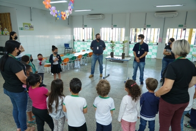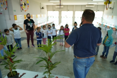 Uma escola particular da cidade também recebeu a mesma ação de plantio de mudas no início do mês. Após a breve palestra dos servidores, os alunos plantaram as mudas de espécie brinco-de-índio.
