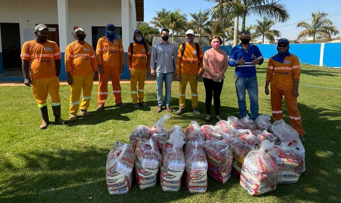 Profissionais que atuam na coleta de lixo receberam na manhã desta terça-feira (17) cestas básicas durante ação social. Ao todo, 21 cestas foram distribuídas aos servidores que atuam na operação de contentores e que estão ligados ao Serviço Autônomo de Água e Esgoto (Saae).