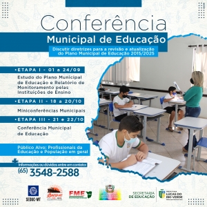 A Secretaria de Educação de Lucas do Rio Verde, profissionais da área e população em geral se reuniram nesta semana para a última etapa da III Conferência Municipal de Educação para concluir as discussões sobre a atualização do Plano Municipal de Educação 2015/2025.