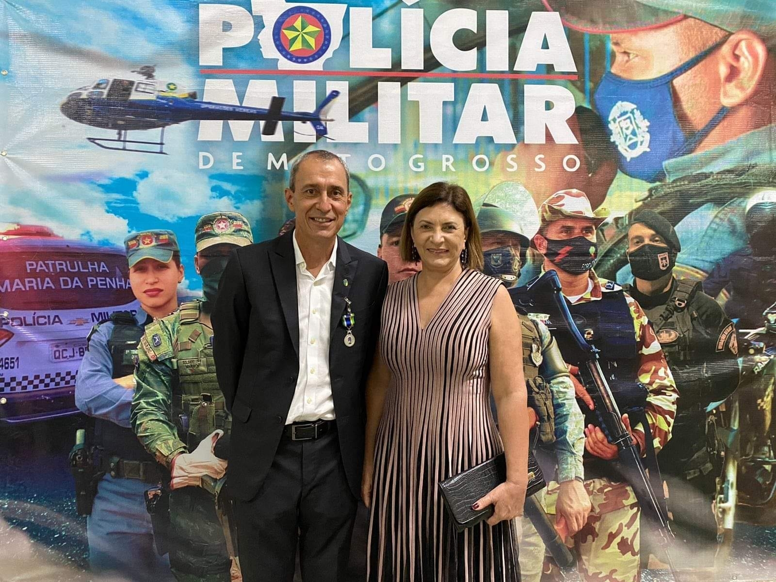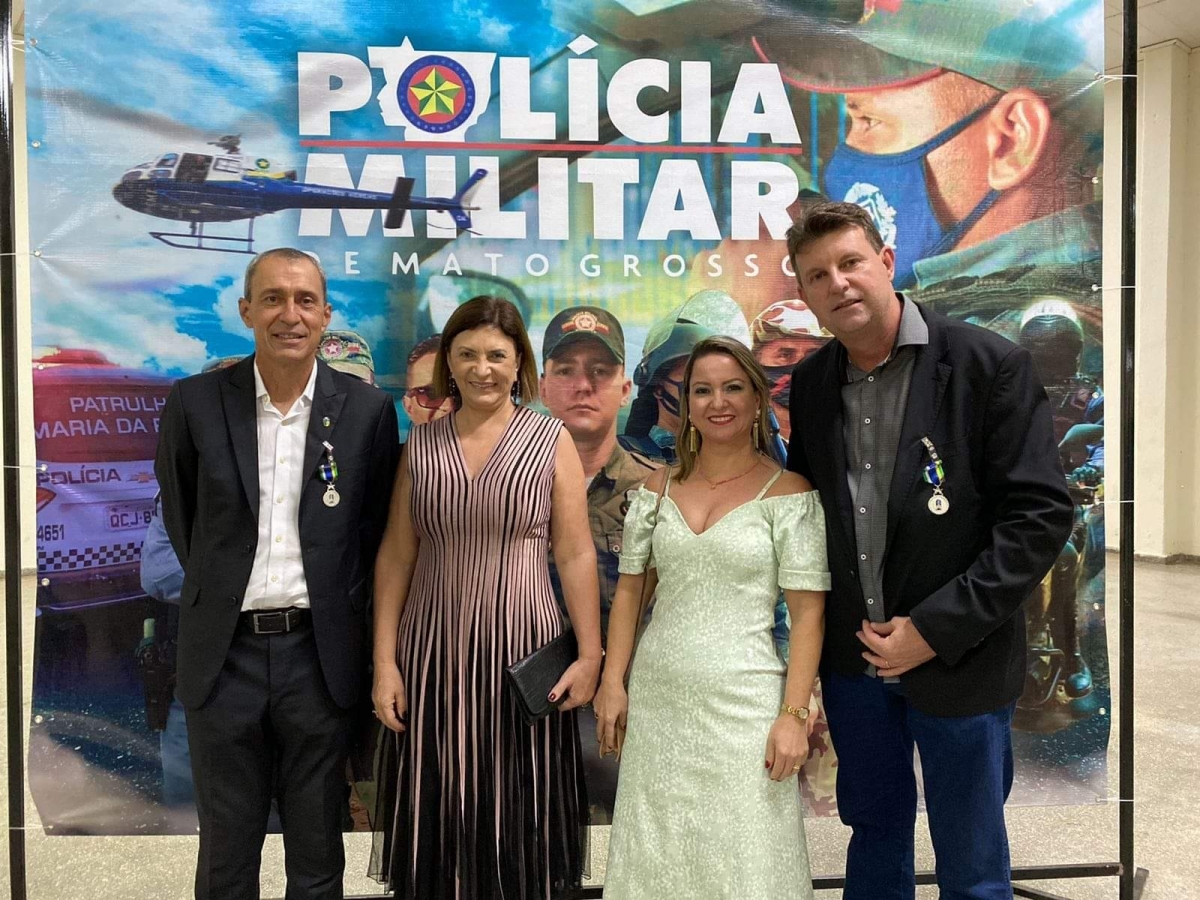 Na noite desta segunda-feira (20), o prefeito de Lucas do Rio Verde, Miguel Vaz, e a primeira-dama Janice Ribeiro participaram da cerimônia de condecorações às personalidades, realizada pela Polícia Militar de Mato Grosso (PMMT). Na ocasião, o gestor municipal foi homenageado com a medalha “Homens do Mato”, reconhecendo a atuação do prefeito na área da Segurança Pública.