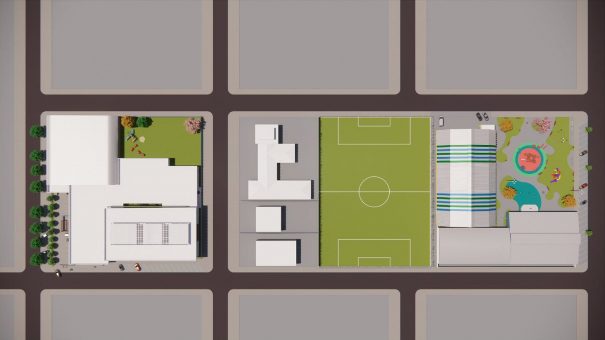 Segundo o projeto, no local onde atualmente é a praça, será construído um campo de futebol, já que o espaço esportivo deixa de existir para receber o novo prédio da unidade escolar.