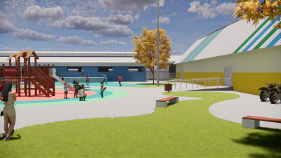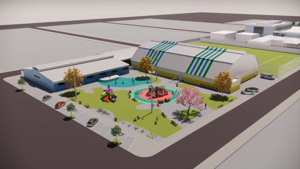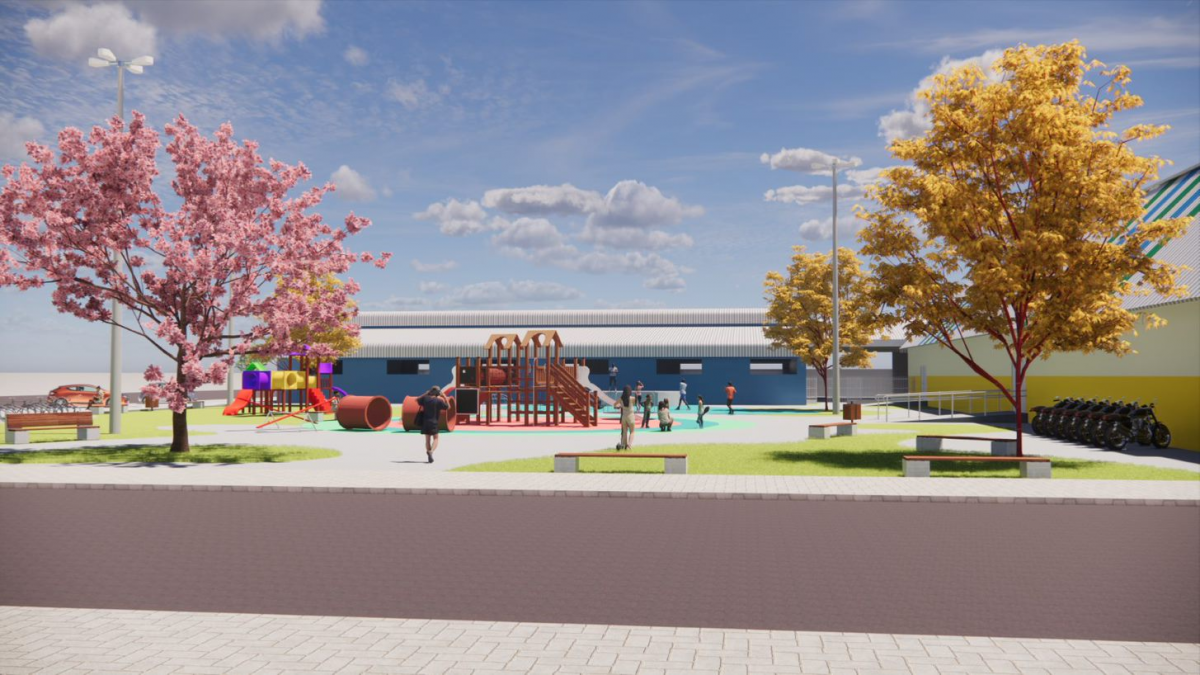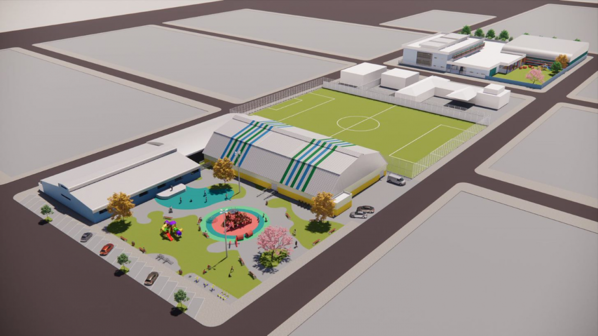 A escola terá área total de 5.449,64 m², com 19 salas de aula, laboratório, sala maker, biblioteca, sala de apoio, sala de reforço, sala de Atendimento Educacional Especializado (AEE), sala de dança, sala de música, escovário, parte administrativa com 7 salas, ginásio com vestiários, cozinha e refeitório.