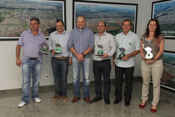 A comissão recebeu uma estatueta representando a ave-símbolo do município
