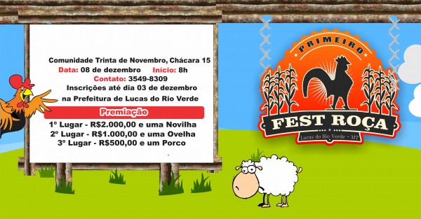 O Fest Roça vai ter jogos como pegar a galinha, manhar o porco, lançamento de tora, tiro ao alvo com estilingue