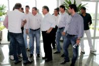 No novo Paço Municipal, o senador elogiou a modernidade do prédio e ressaltou a coragem do prefeito Marino Franz em construir a prefeitura em um local afastado.