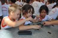 Brincadeiras e atividades promovidas pelos professores como pular corda, dominó e xadrez também deixam os alunos mais calmos e concentrados durante a aula.