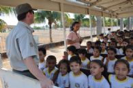 As palestras e brincadeiras acontecem até sexta-feira (23) e fazem parte do projeto “Transitando seguro”, uma parceria entre a Secretaria Municipal de Educação e a Guarda Municipal de Trânsito.