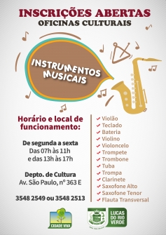 O Departamento de Cultura fica localizado na Avenida São Paulo, bairro Cidade Nova, próximo a praça