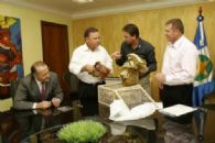 Na oportunidade, Marino levou ao governador uma cesta de embutidos que já estão sendo produzidos pela Sadia de Lucas do Rio Verde.