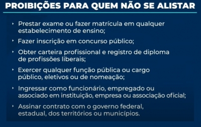 No Brasil o alistamento militar é obrigatório e quem não se alistar pode ter uma série de problemas, como a proibição de: