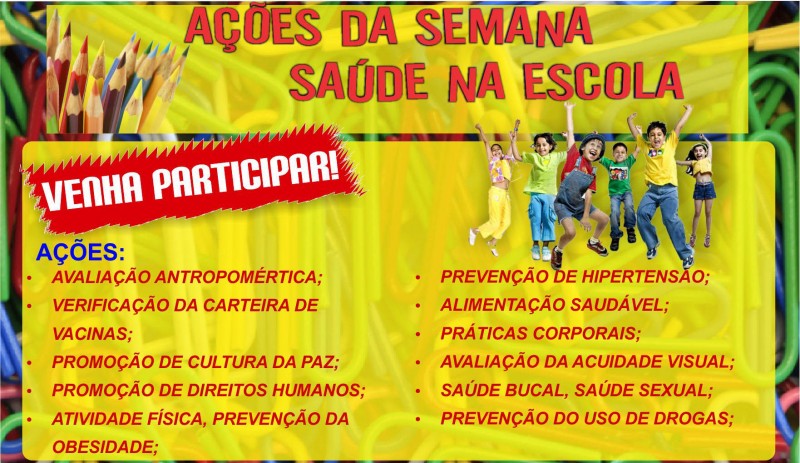 O evento faz parte de uma proposta dentro do Programa Saúde na Escola, do Governo Federal, que visa a integração e articulação permanente da educação e da saúde com o objetivo de melhorar a qualidade de vida da comunidade escolar.