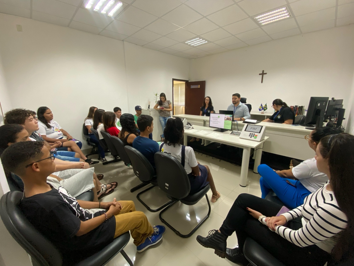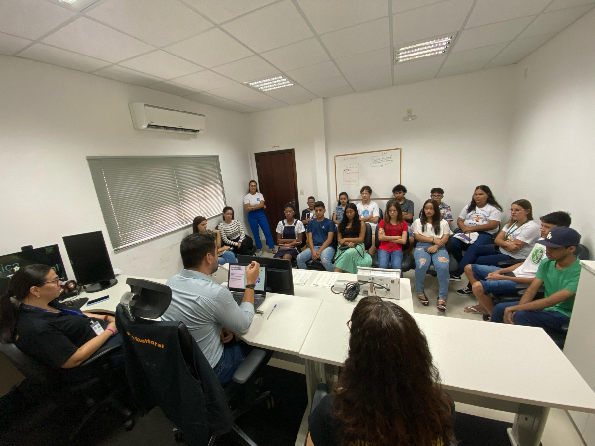 Alunos do Núcleo de Cidadania de Adolescentes (Nuca) do Selo Unicef e adolescentes que participam do Serviço de Convivência e Fortalecimento de Vínculos do Cras de Lucas do Rio Verde exploraram os bastidores democráticos em uma visita ao Cartório Eleitoral da cidade, promovida pela equipe da Secretaria de Assistência Social e Habitação.