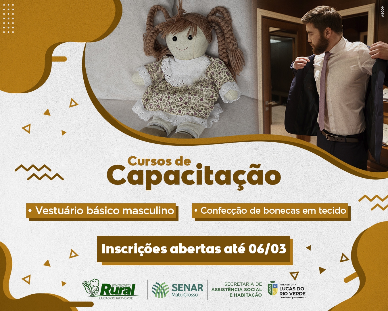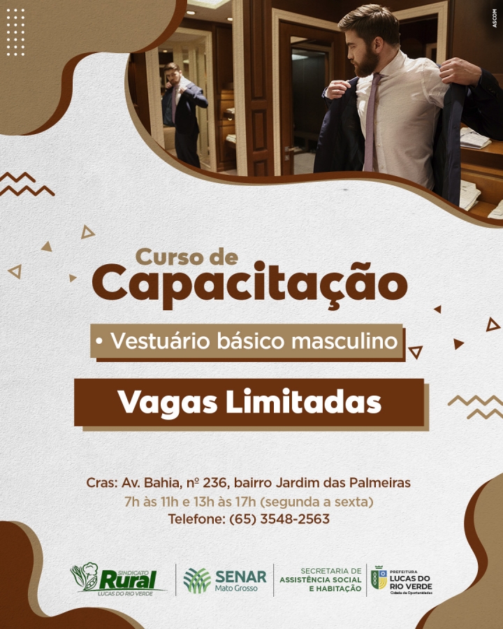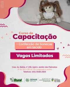 Os cursos gratuitos oferecidos pela Secretaria de Assistência Social e Habitação de Lucas do Rio Verde e parceiros estão de volta. Aos interessados em aprender a confeccionar boneca em tecido ou vestuário básico masculino, as inscrições estão abertas.