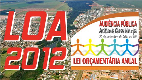 A Prefeitura de Lucas do Rio Verde promove na próxima terça-feira (20), às19h, no auditório da Câmara Municipal a audiência pública da Lei Orçamentária Anual (LOA) de 2012. O evento é a oportunidade da população conhecer as previsões de recursos e as ações que serão executadas pelo poder público no próximo ano.