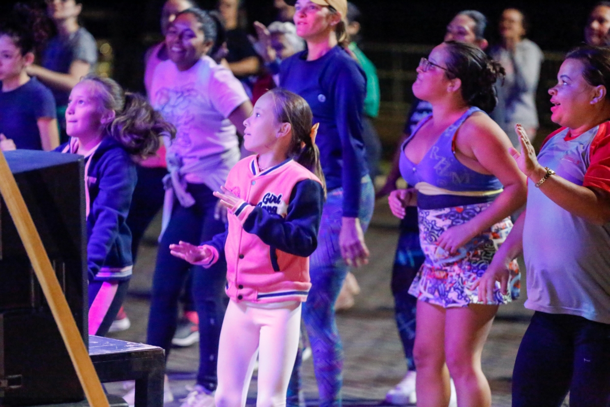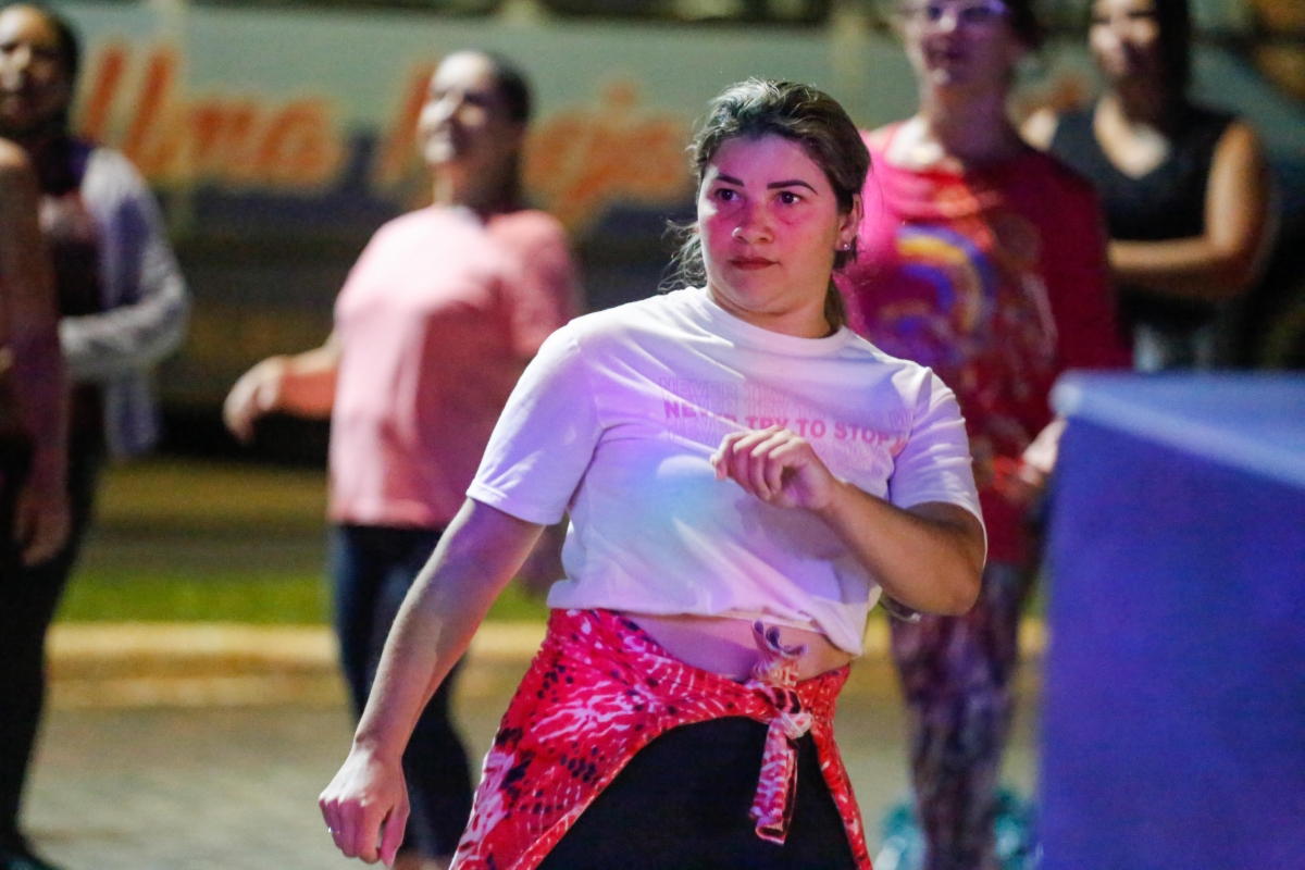 Mesmo com o frio, dezenas de pessoas participaram do terceiro aulão de dança do Programa Viva Lucas, realizado no Lago Ernani Machado, na noite desta quarta-feira (18). A iniciativa da Prefeitura de Lucas do Rio Verde, por meio da Secretaria de Esporte e Lazer, levou aos participantes muita alegria e animação durante as duas horas de encontro.
