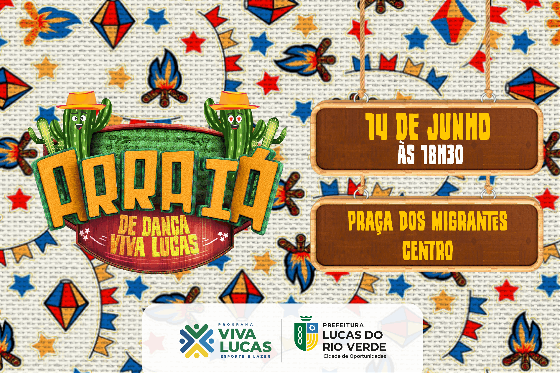 Muita música, diversão e dança são os ingredientes para mais um aulão do programa Viva Lucas nas praças. O aulão junino acontece na próxima quarta-feira (14), na Praça dos Migrantes, no bairro Centro, a partir das 18h30 e é aberto a toda a comunidade.