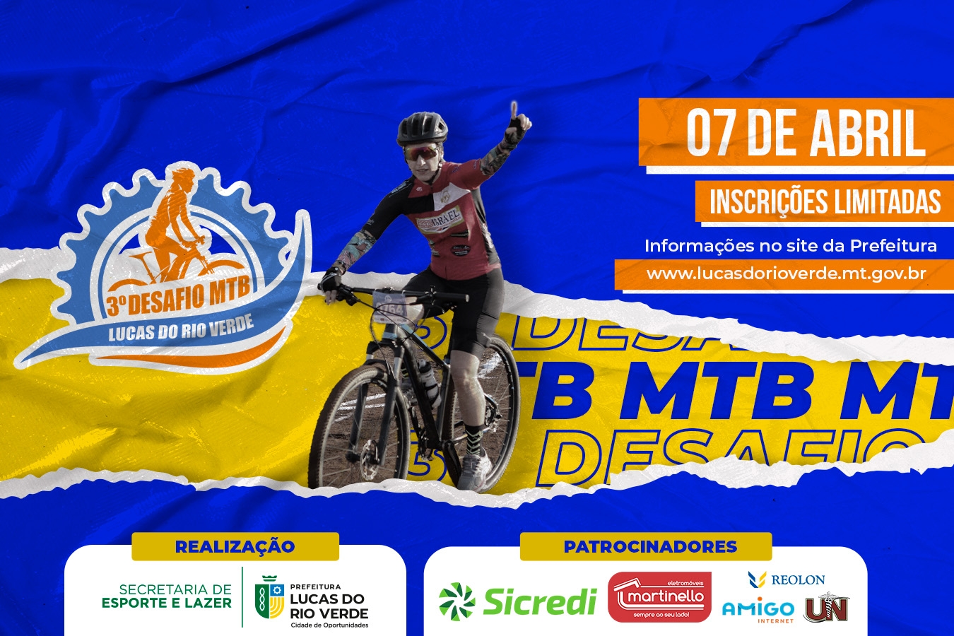 A primeira disputa do 3º Desafio de Mountain Bike do ano já tem data definida. Será realizada no dia 07 de abril, em estradas rurais do município.