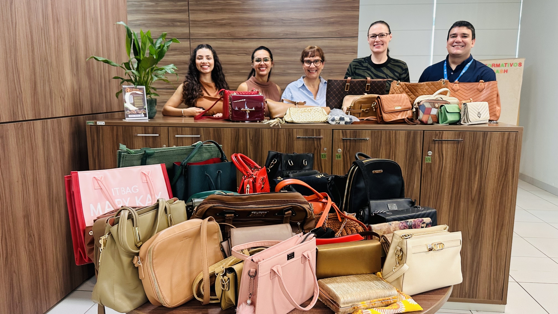 As bolsas foram doadas por mulheres que participaram do evento Sebrae Delas, realizado no dia 10 de março. A arrecadação aconteceu por meio de um ingresso solidário, em que cada participante levou uma bolsa nova ou em bom estado para doação.