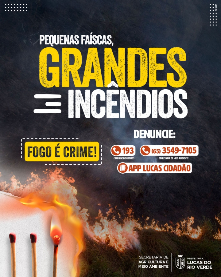 Começa nesta sexta-feira (1º) a campanha de combate ao fogo da Prefeitura de Lucas do Rio Verde, por meio da Secretaria de Agricultura e Meio Ambiente. O objetivo é conscientizar e alertar a população sobre os graves prejuízos causados pelas queimadas.