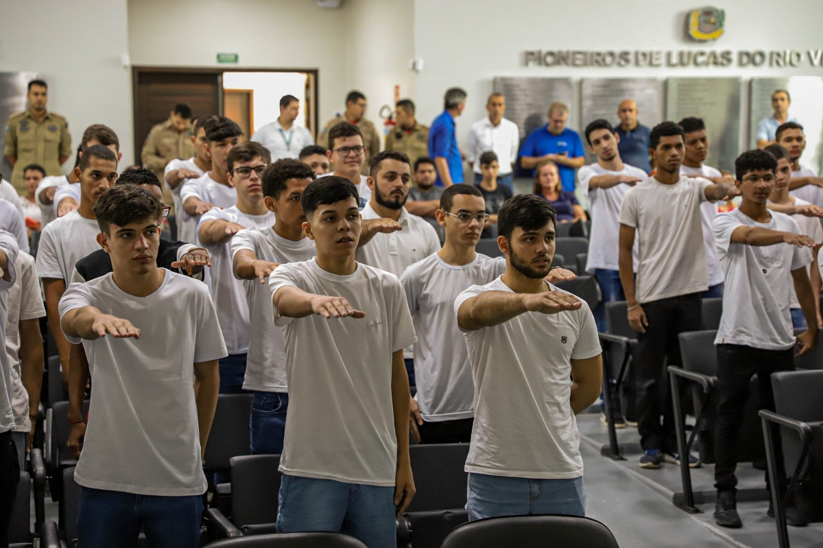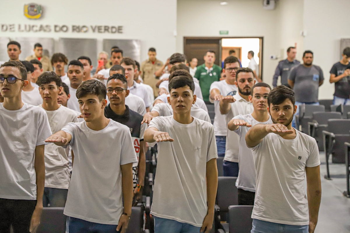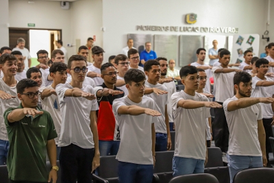 Na manhã desta sexta-feira (14), foi realizada a primeira Cerimônia de Juramento à Bandeira e entrega do Certificado de Dispensa de Incorporação Militar (CDI) de 2023, após período pandêmico que suspendeu o alistamento de forma presencial. Ao todo, 166 jovens da Classe 2005 ou de anos anteriores se inscreveram e 100 participaram do ato.