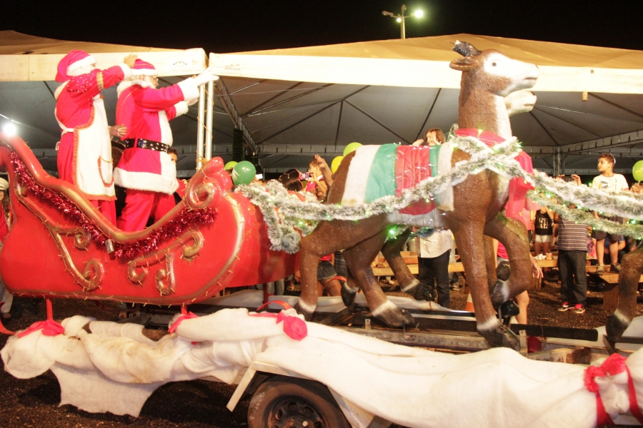 Após a carreata, o casal Noel seguiu para a Cidade Luz de trenó onde foram recebidos com muito encanto por crianças, pais e autoridades. No palco principal, poemas e músicas natalinas aguardavam o ilustre visitante. O vice-prefeito Miguel Vaz deu boas-vindas e entregou a chave da cidade ao Bom Velhinho.
