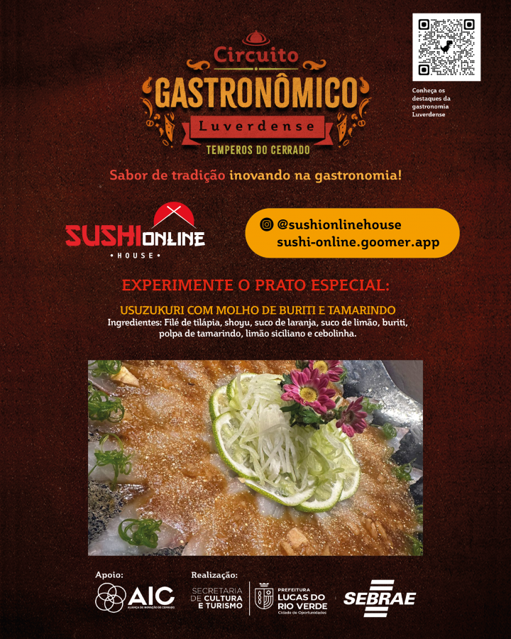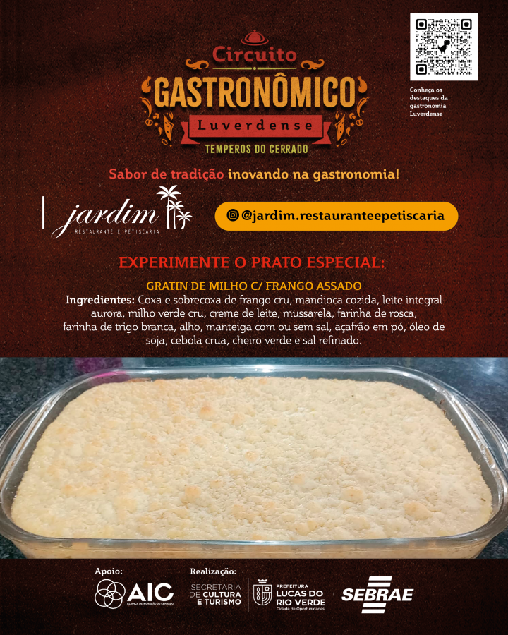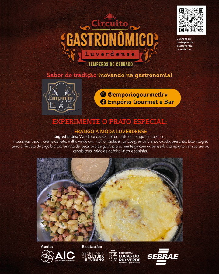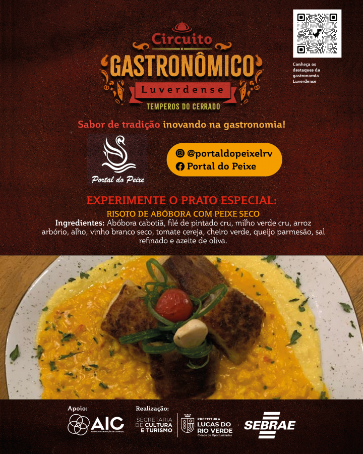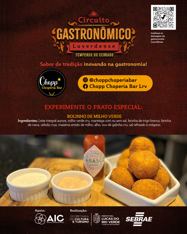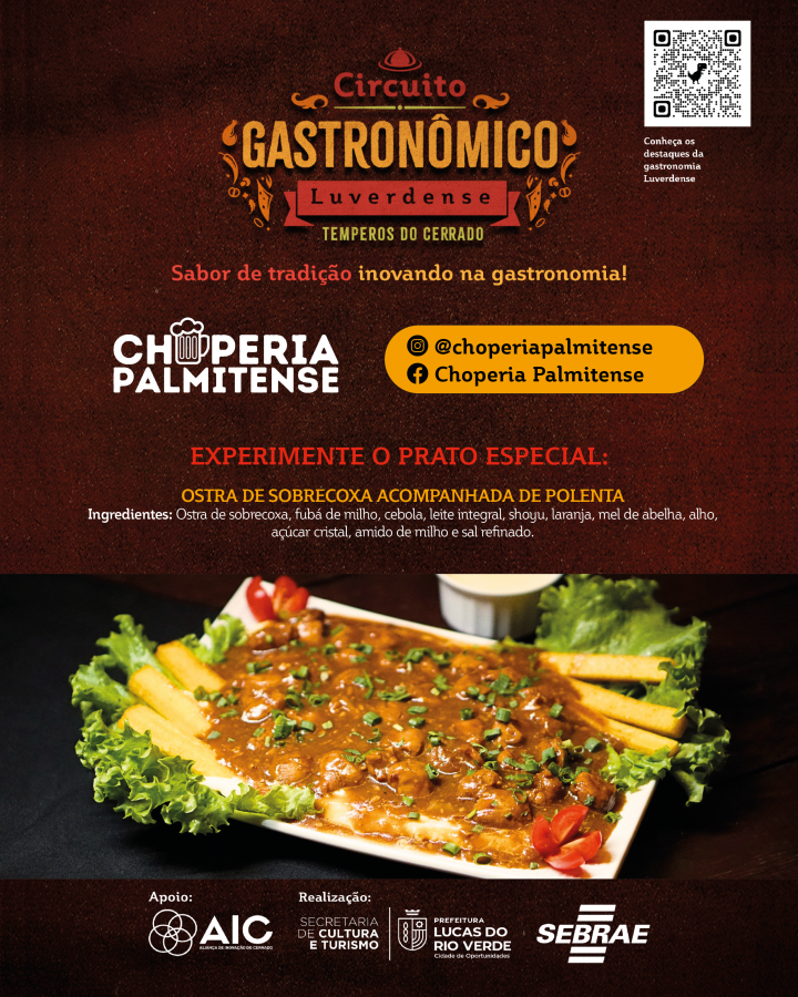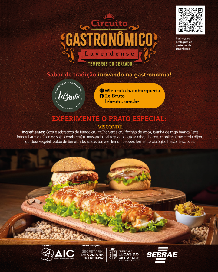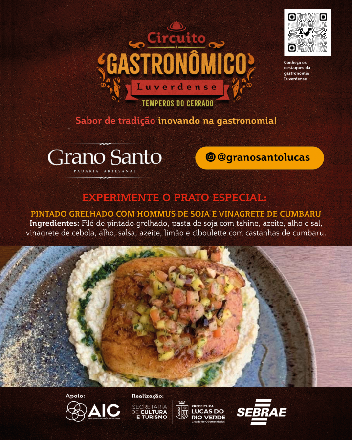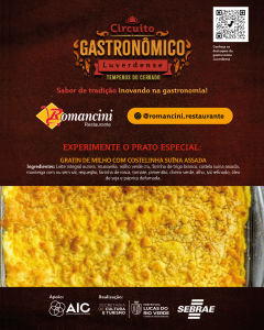A Prefeitura de Lucas do Rio Verde convida a comunidade para participar do Circuito Gastronômico Luverdense “Temperos do Cerrado”. O projeto, desenvolvido pela Secretaria de Cultura e Turismo, em parceria com o Serviço de Apoio às Micro e Pequenas Empresas de Mato Grosso (Sebrae-MT), com o apoio da Aliança de Inovação do Cerrado, começa nesta terça-feira (17), em 17 restaurantes do município.