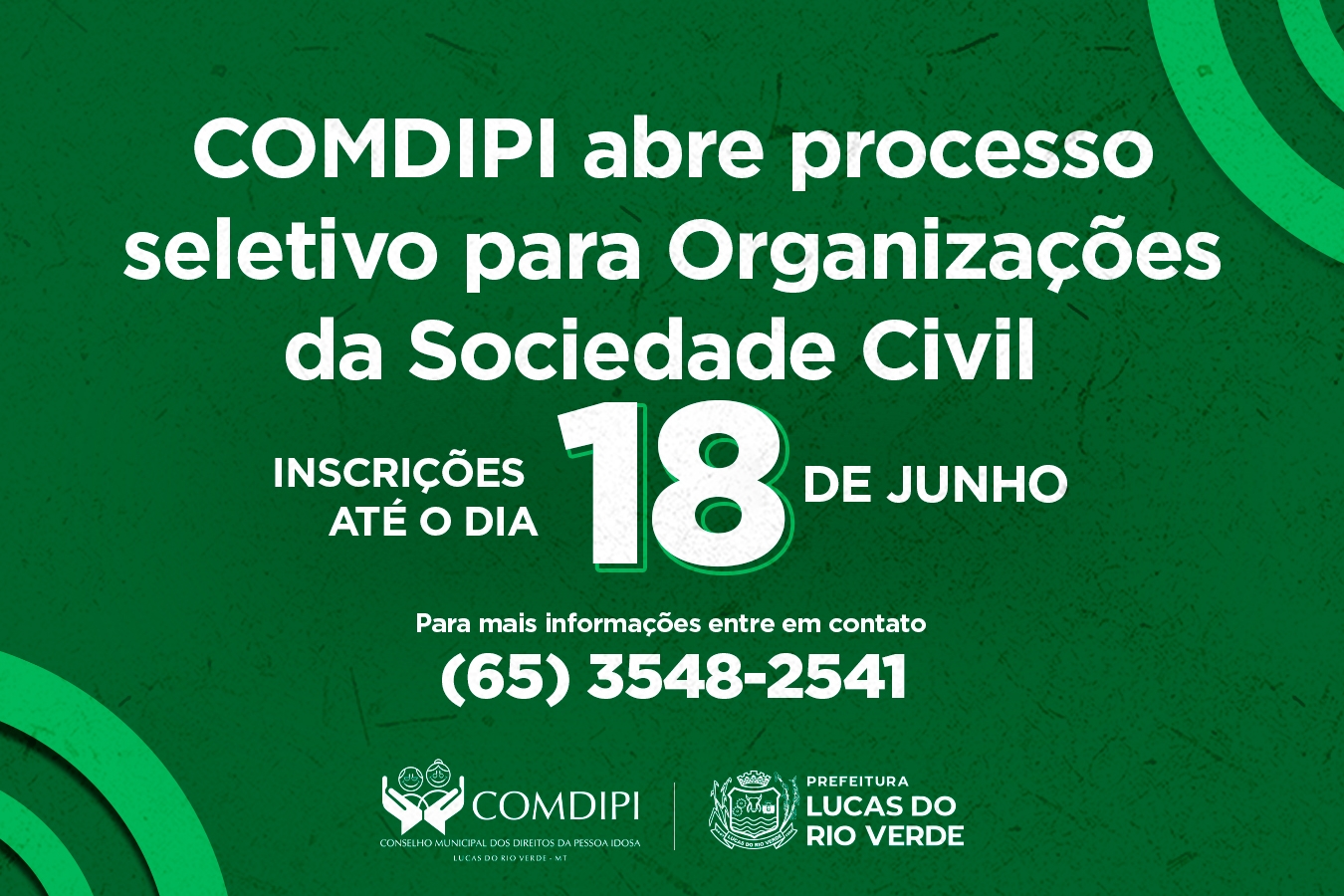 O Conselho Municipal dos Direitos da Pessoa Idosa de Lucas do Rio Verde está com inscrições abertas para as Organizações da Sociedade Civil (OSCs) que tenham interesse em ingressar no COMDIPI no período de 2025 a 2027. O processo seletivo é regulamentado Edital de Convocação nº 01/2025.