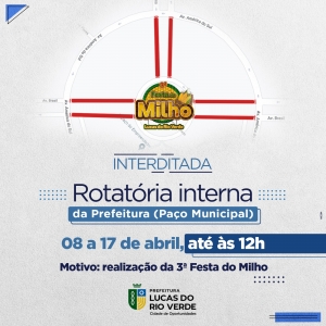 Por conta da organização do evento, os motoristas devem se atentar ao trânsito nas rotatórias da Prefeitura, que já estão recebendo as estruturas do palco. A rotatória interna será fechada na tarde desta segunda-feira (08), e só será reaberta às 12h de quarta-feira (17).
