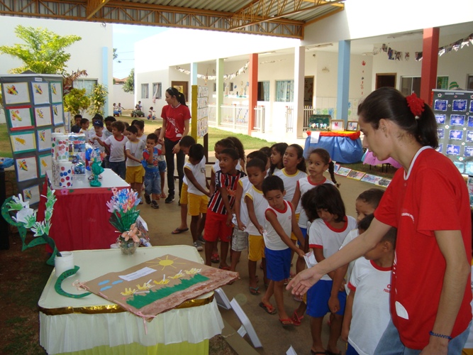 Dezenas de trabalhos feitos pelos alunos em sala de aula estão à disposição dos visitantes. Garrafas pets, potes de plástico, papéis e outros materiais foram reutilizados, e com um pouco de tinta e criatividade foram criadas as pinturas, quadros, livros, brinquedos e diversas outras obras.