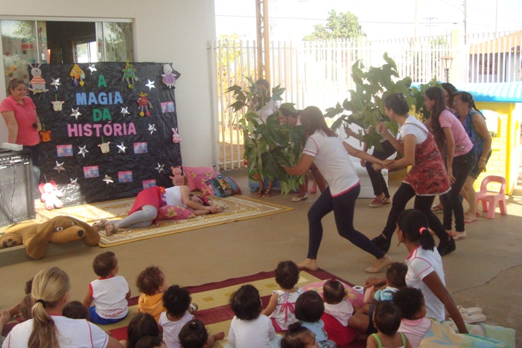 Na tarde de ontem (17), professoras, monitoras e demais servidores da creche fizeram apresentações de teatro para as crianças. “É um trabalho de cooperação que envolve toda equipe da Anjo da Guarda”, destaca a gestora Sirlaine Medeiros.