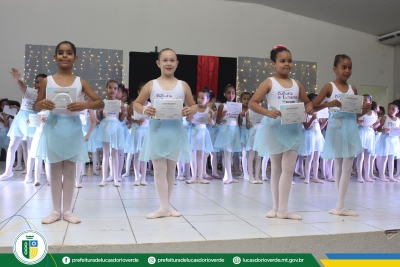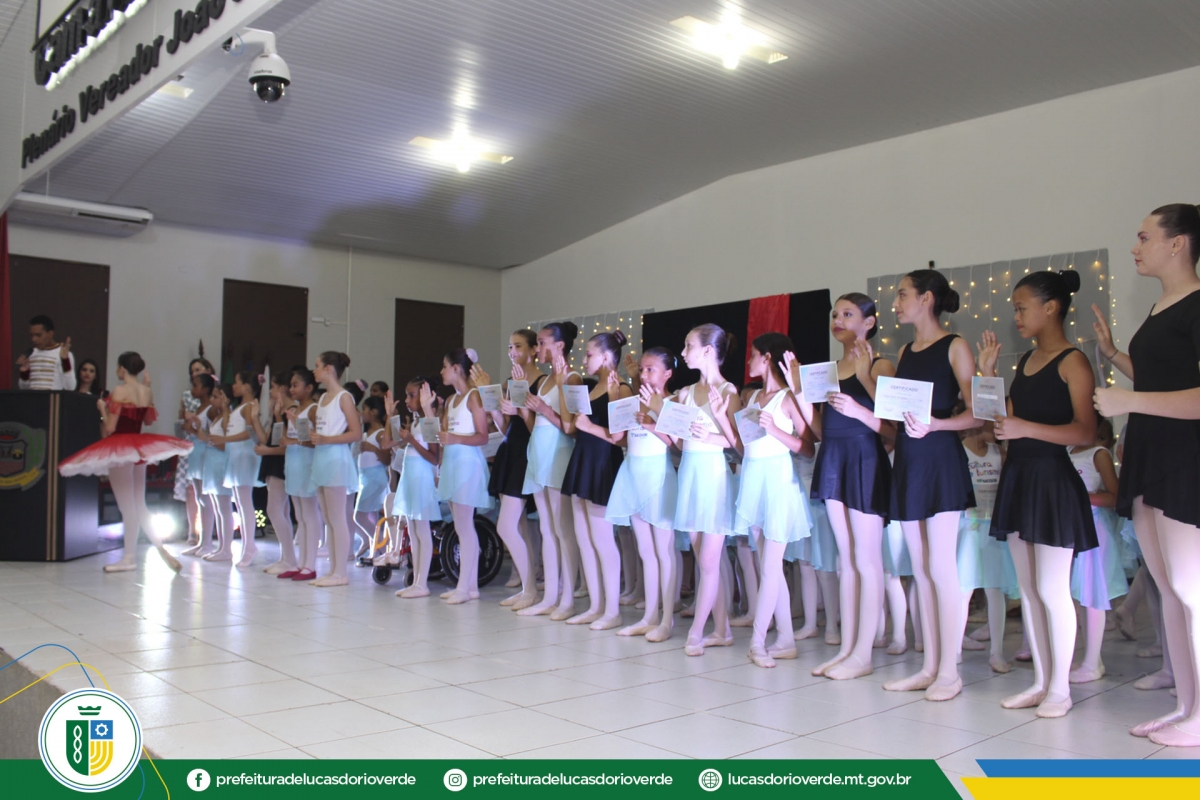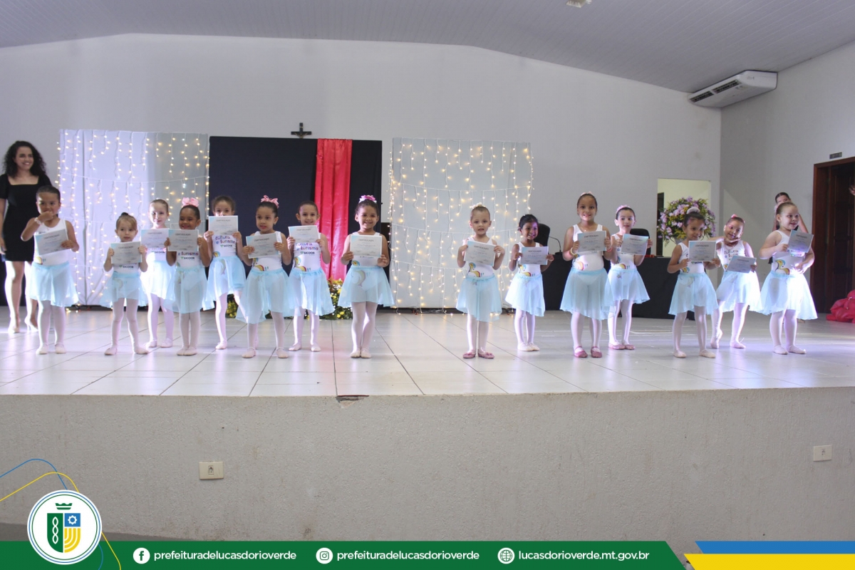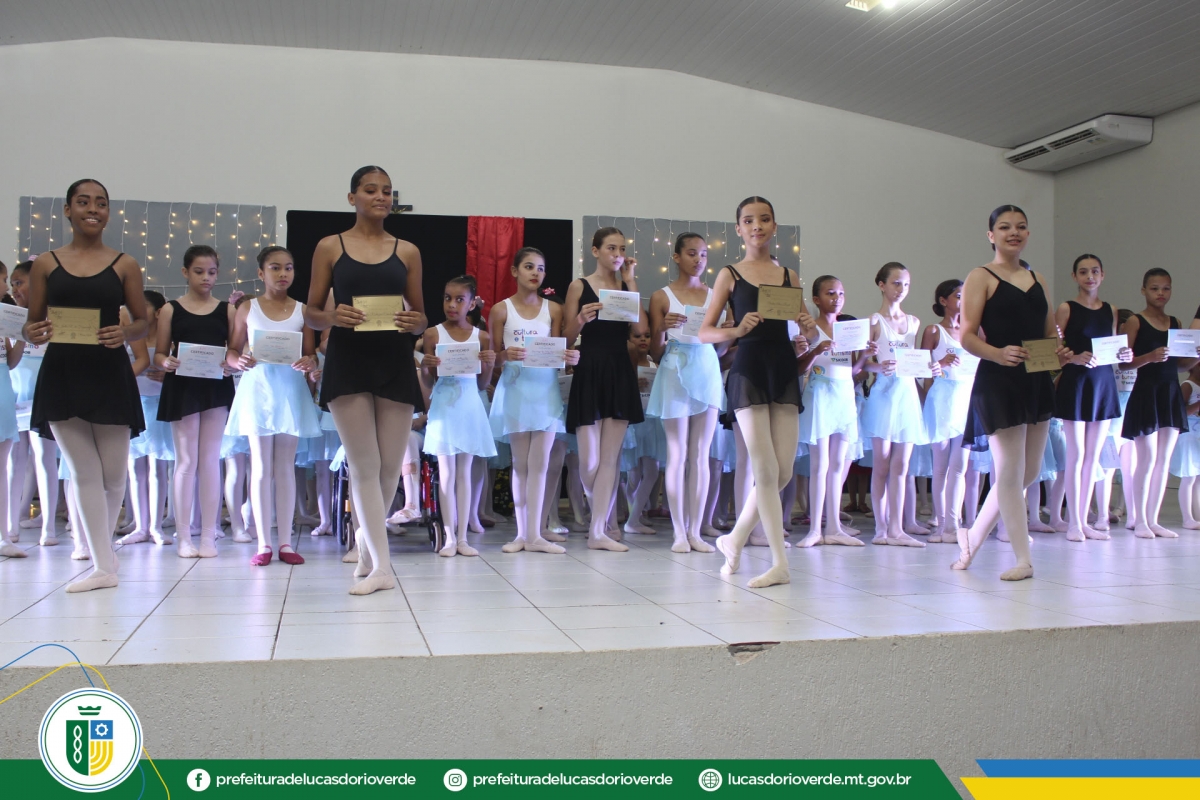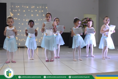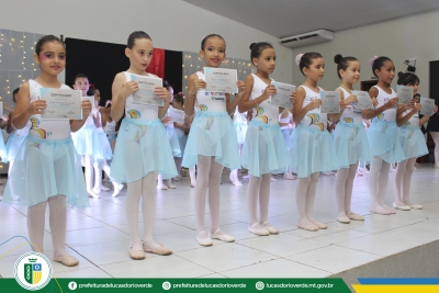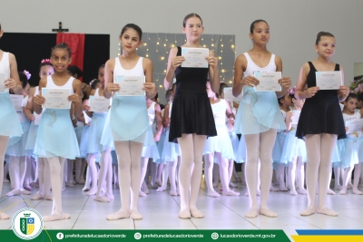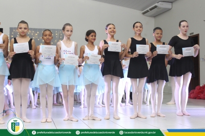 Quem também recebeu a certificação foram as 125 alunas de ballet. As bailarinas dos níveis Baby Class, Elementary I e II, Preparatório I e II, Básico II e Intermediário I se apresentaram levando muita emoção aos familiares e convidados presentes.